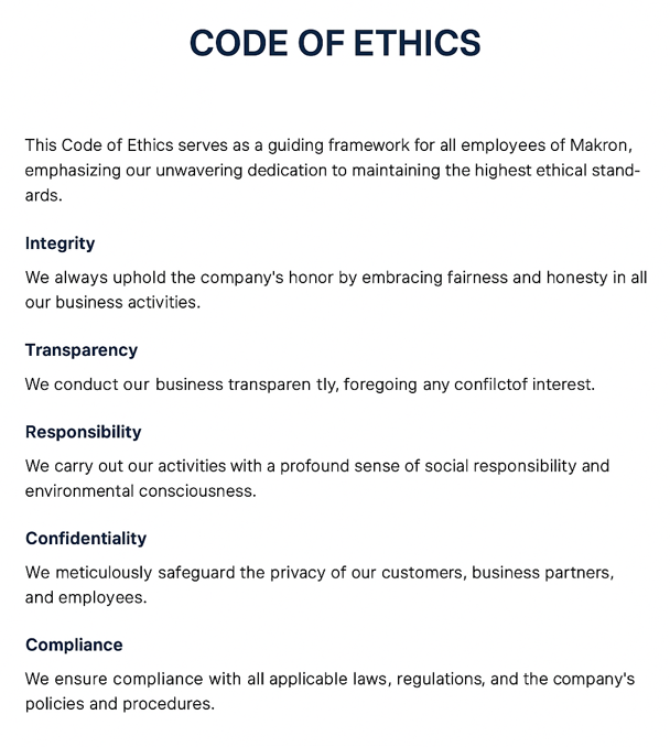 Makron Etik Kodu, tüm çalışanlarımız